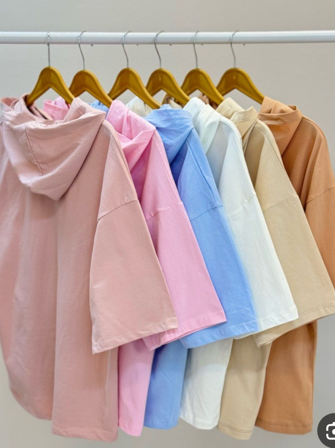 تیشرت کلاه دار دخترانه قد ۶۵ رنگ بندی صورتی ...سفید ...سبز...خردلی.. سرمه ای...کرم. ساده کیفیت عالی دوخت تمیز