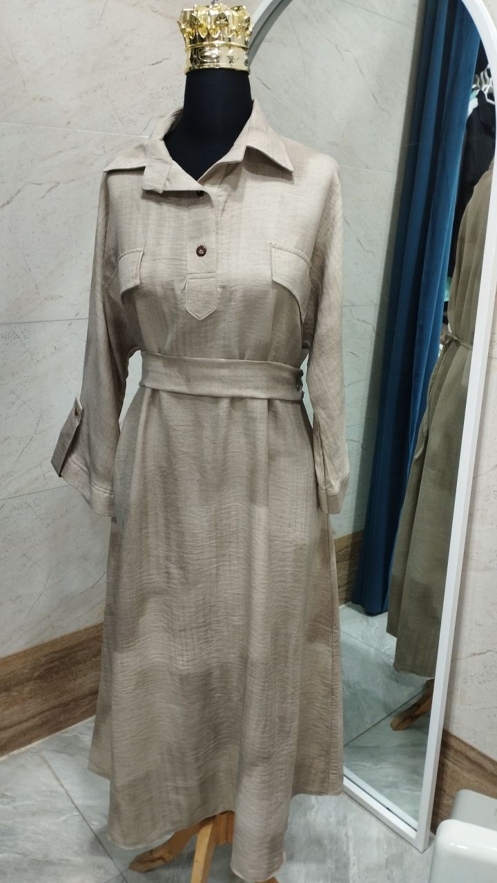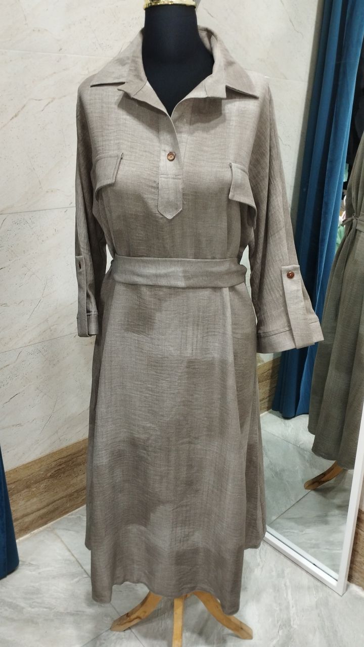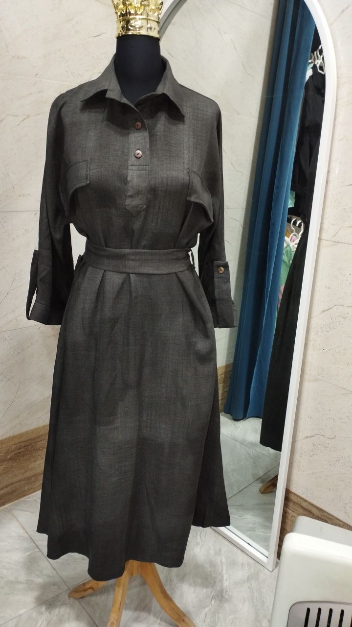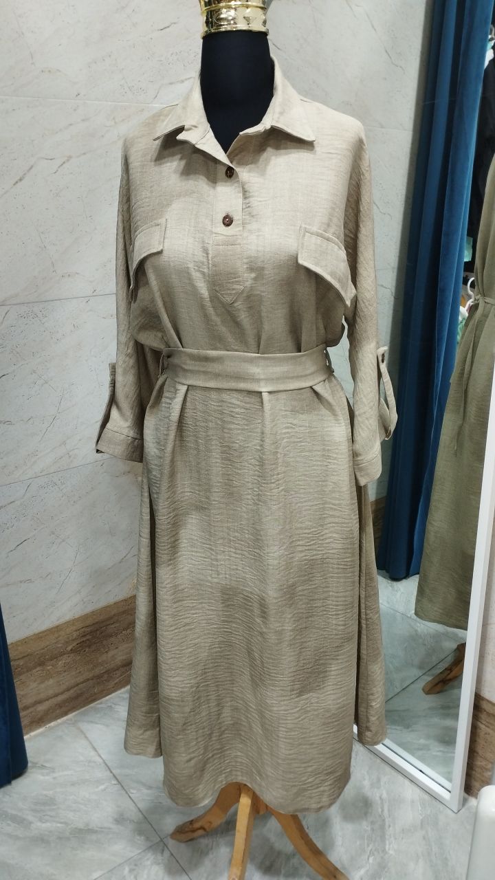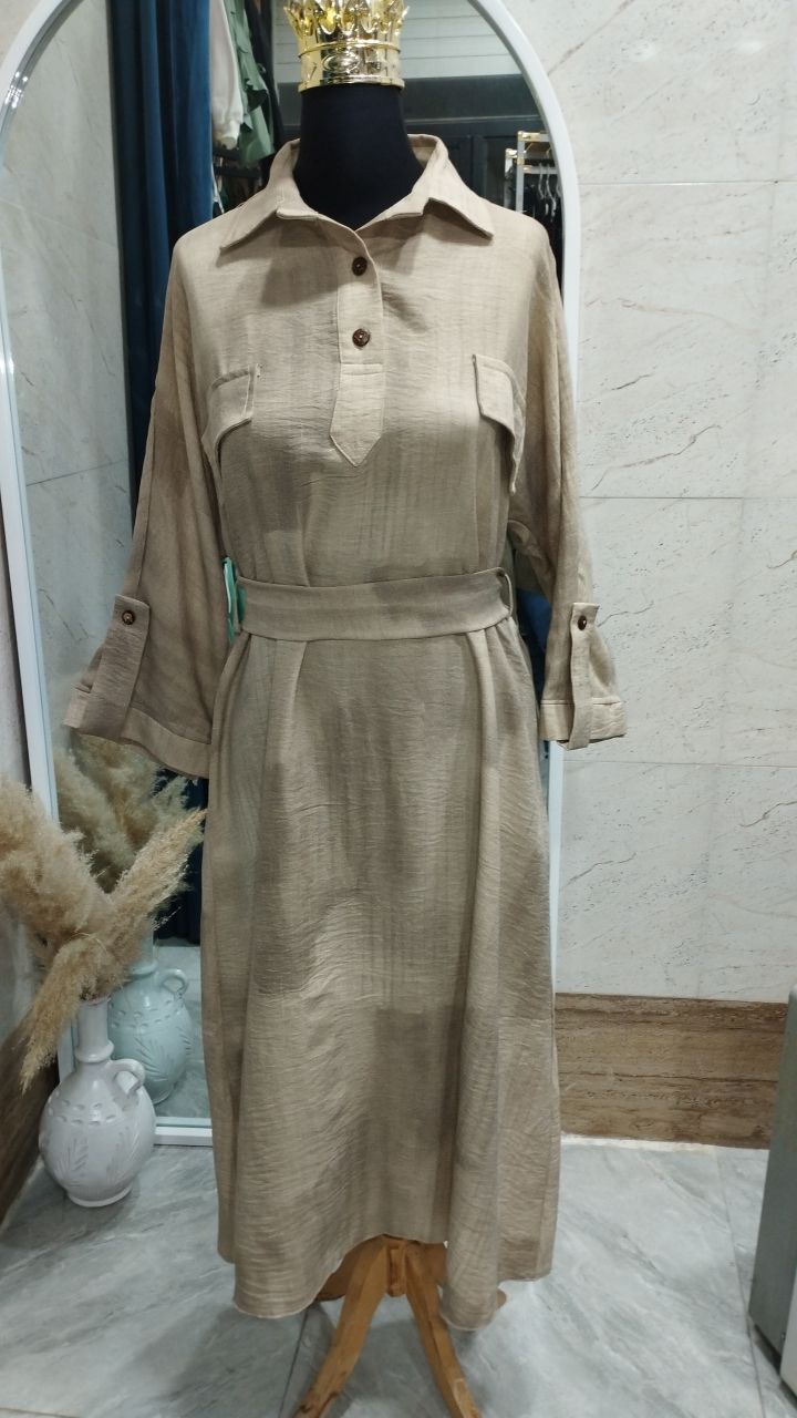 کفتان گازایلی بلند دکمه چوبی جنس وارداتی نرم بدون آب رفت و لطیف فری از ۴۰ تا ۴۸ قد ۱۳۵ کمر بند دار از جنس خودش